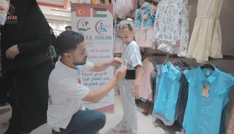 بفضل الله عزوجل؛ استطاعت الجمعية العالمية للتنمية والتضامن -شفق- بتنفيذ مشروع بسمة العيد عبر توزيع ملابس عيد الاضحى المبارك على أطفال الجرحى في قطاع غزة المحاصر، حتى يستطيعوا الشعور بالعيد وفرحته وبهجته أسوة بالأطفال الآخرين، فهيَّا بِنَا معاً لإسعادهم في هذه الأيام المباركة.