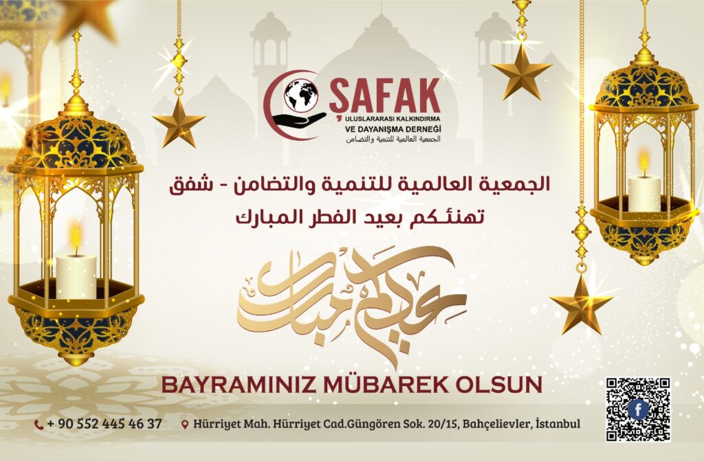 الجمعية العالمية للتنمية والتضامن -شفق- تتقدم إليكم بالتهنئة والتبريكات بمناسبة حلول عيد الفطر المبارك.. أعاده الله علينا وعليكم بالخير واليُمْن والبركات.. وتقبل الله منا ومنكم صالح الأعمال وكل عام وأنتم بخير
